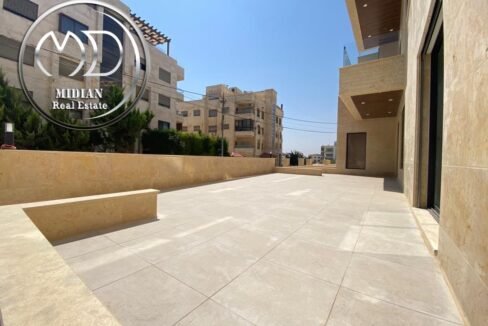شقة ارضية فارغة للايجار جبل عمان مساحة 320م مع ترس و حديقة 250م تشطيب سوبر ديلوكس