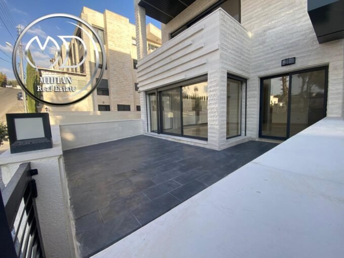 شقة ارضية للبيع خلدا مساحة 190م مع ترس و حديقة 250م تشطيبات و ديكورات فاخرة جداً جديدة لم تسكن