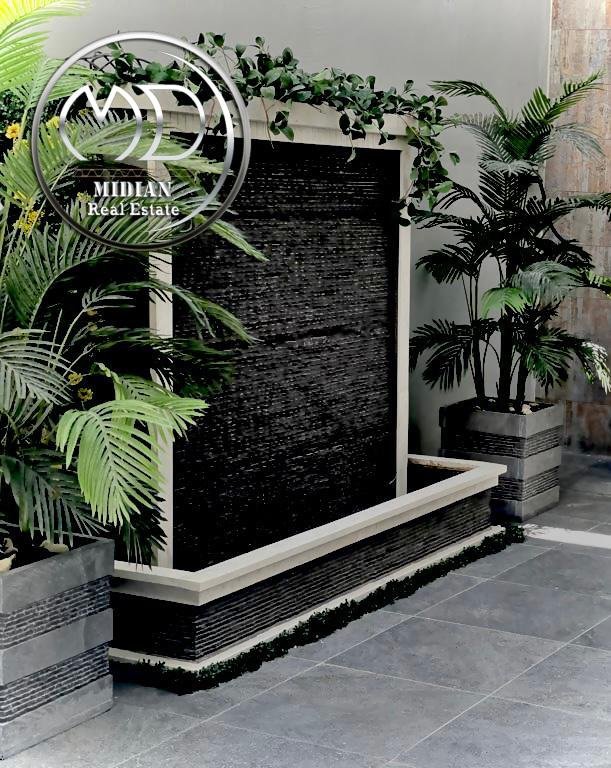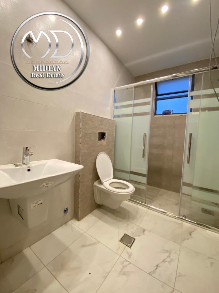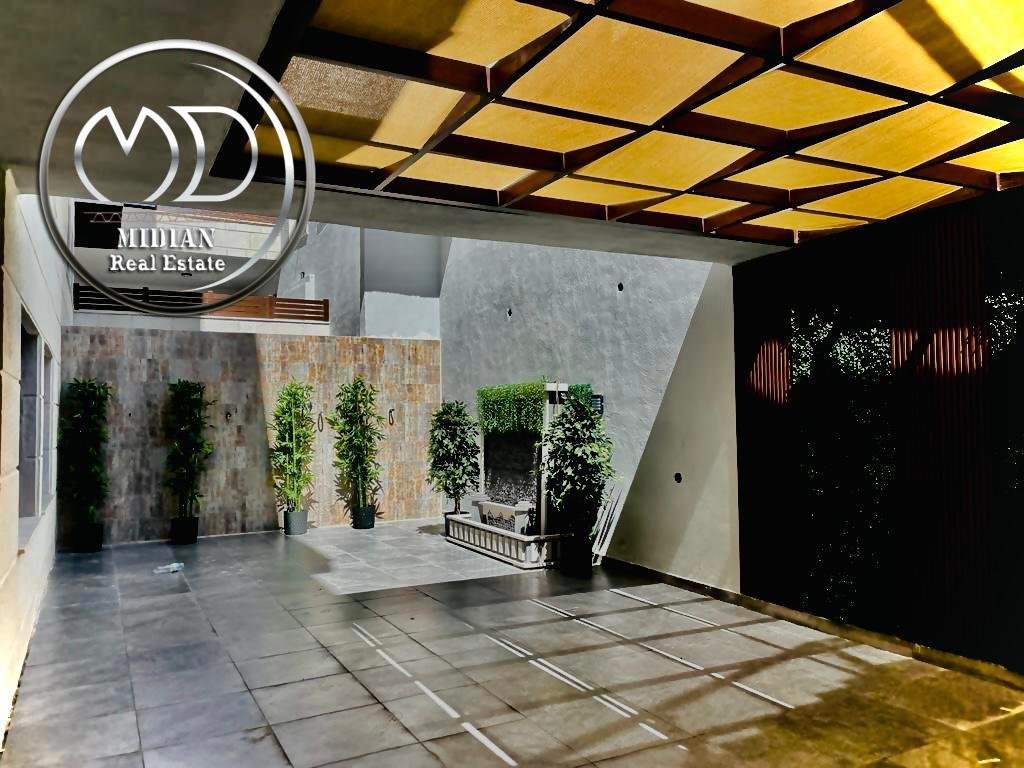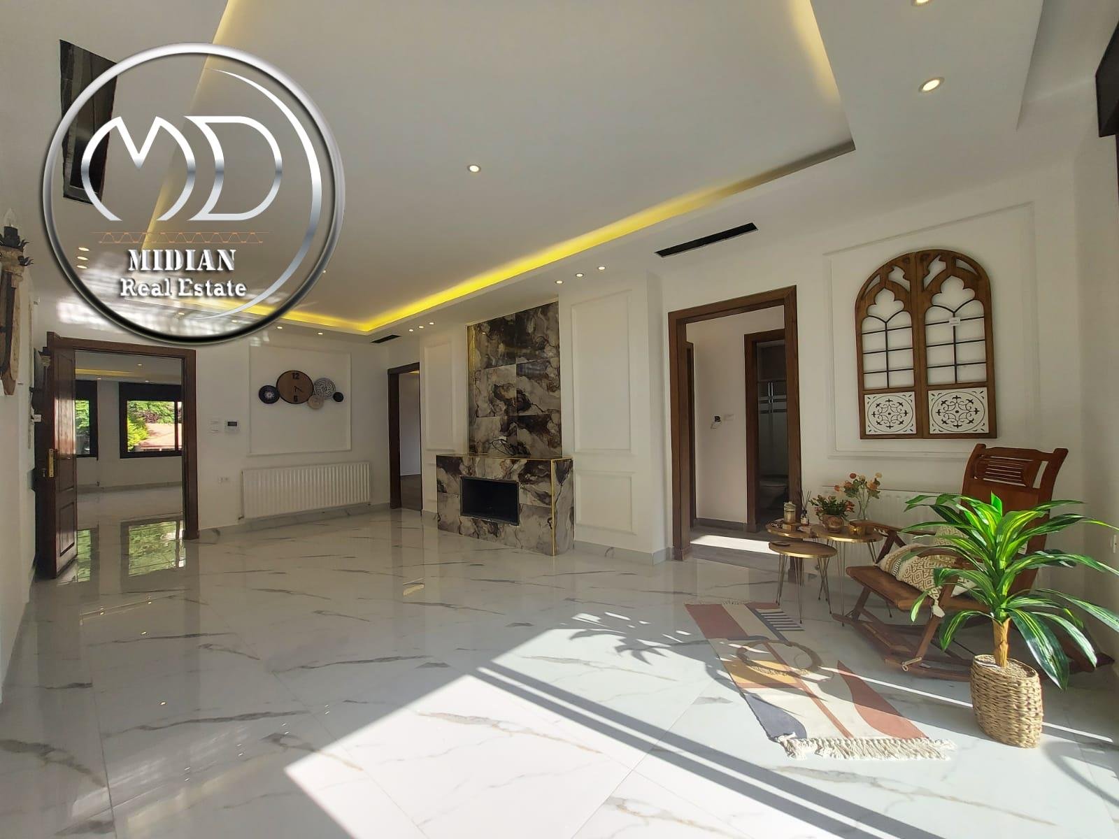 صالون – معيشة – مطبخ – 3 نوم 1 ماستر – 4 حمام – ترس وحديقة 120م- شلال – تدفئة غاز تحت البلاط – تكييف مركزي .