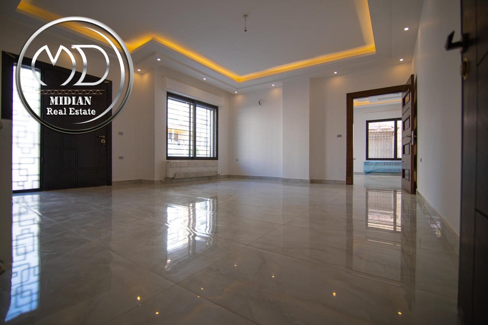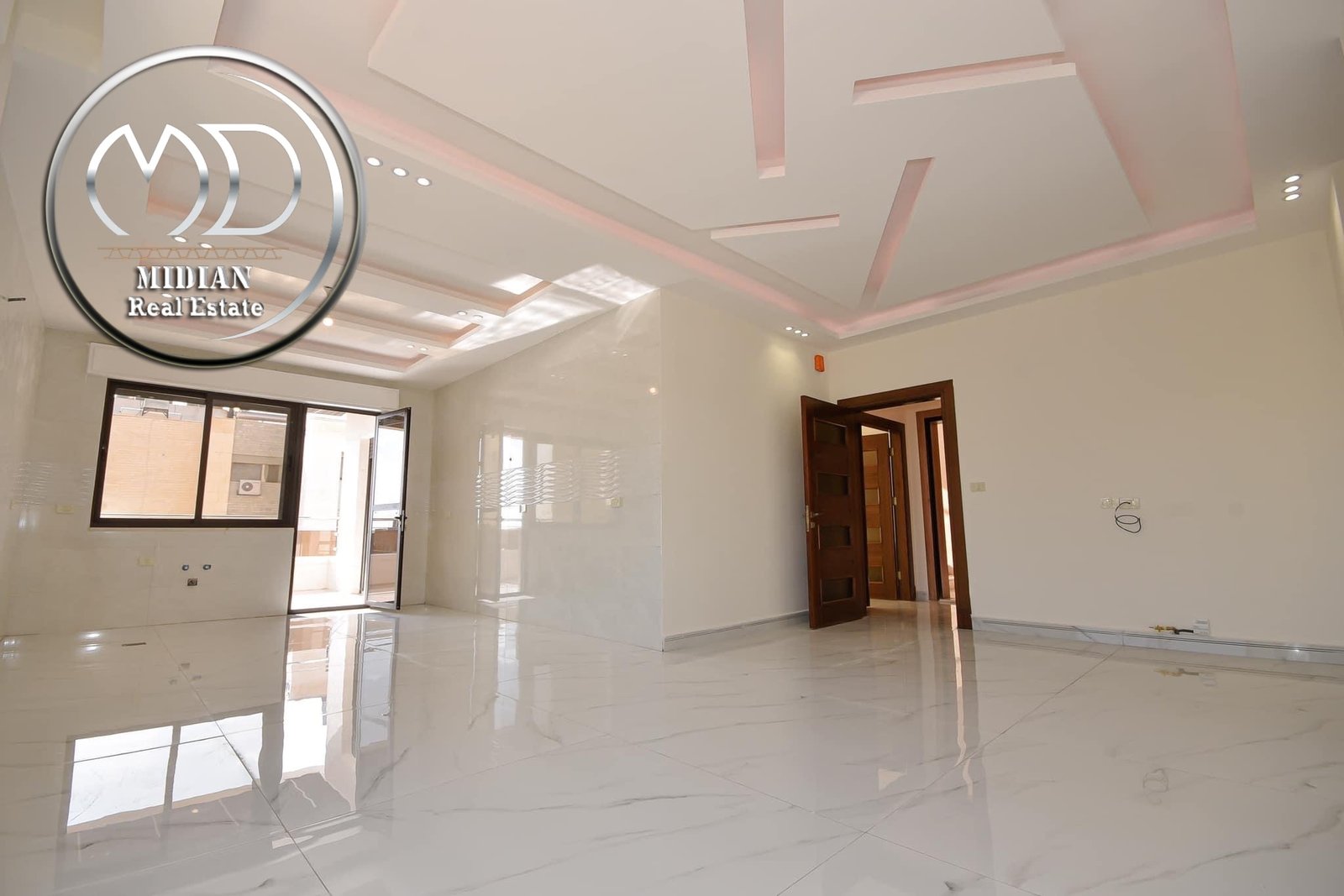 شقة ارضية جديدة للبيع خلدا مقابل دابوق مساحة 225م مع ترس و حديقة 250م تشطيبات و ديكورات فاخرة جداً .